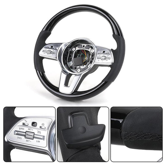 Custom Volant Black Piano Leather Exclusive Wooden Steering Wheel for Mercedes Benz S-Class W222 W223 Maybach W247 W246 W242