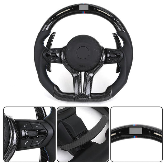 With Carbon Trim Paddle Half Perforated Leather Carbon LED Steering Wheel for BMW F10 F30 F32 F36 F80 M4 F82 X5 F15 E70 X6 E71