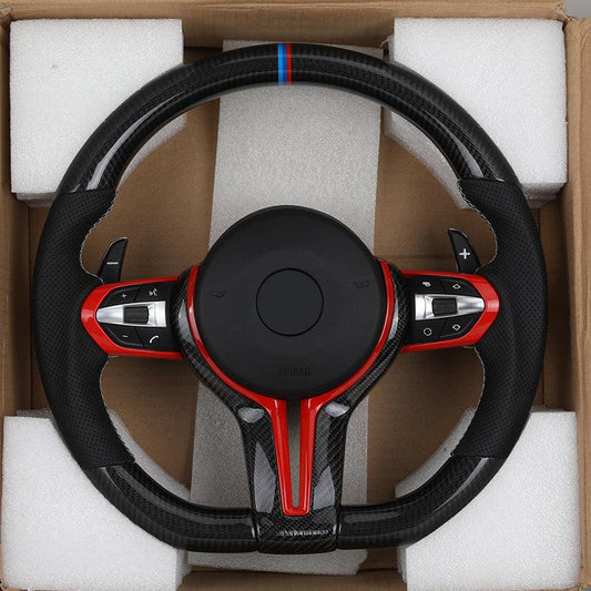 With Red Insert Trim Half Leather Carbon Steering Wheel for BMW F Series F10 F20 F30 F32 M3 F80 M5 F90 X5 F15 E70 E87 E90 E92