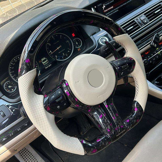 With Forged Carbon Trim Apricot Color Leather M Sport Steering Wheel for BMW F01 F06 F10 F11 F12 F15 F16 F20 F30 E90 E84 F80 M3