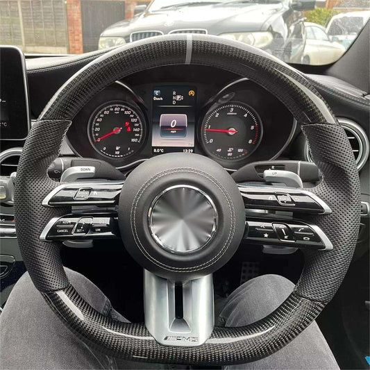 Custom Upgrade Leather Carbon Fiber Steering Wheel for Mercedes Benz S E Class W213 W205 W204 W222 W212 W221 GLC GLS GLB AGM GT